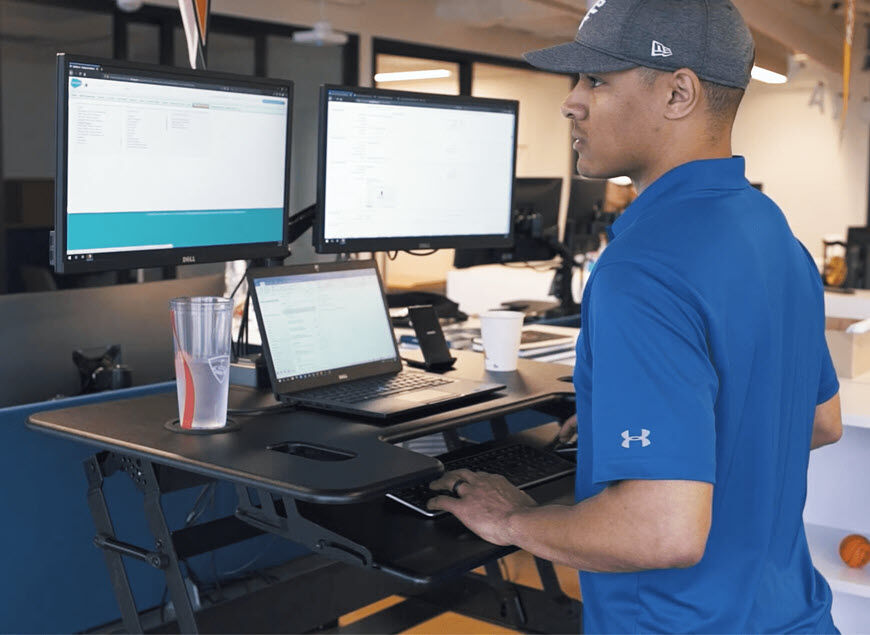 TopGolf chose our most popular desktop converters to meet their need for activity and we outfitted their team in just one day. After touring their office, we recommended our VariDesk® Pro Plus™ 36 and VariDesk® Cube Plus® 40 models. These solutions had their IT team happily sitting, standing, and being more productive right away— and as they continue to grow, they can add new desktop converters or move the ones they have, without the need for expensive remodeling or professional installers.